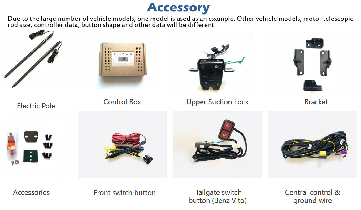 -The power tailgate lift is a device that can control the opening and closing of the tailgate by pressing the vehicle tailgate key, remote control car key, or sensing operation by hand or any object in the corresponding area of the tailgate.