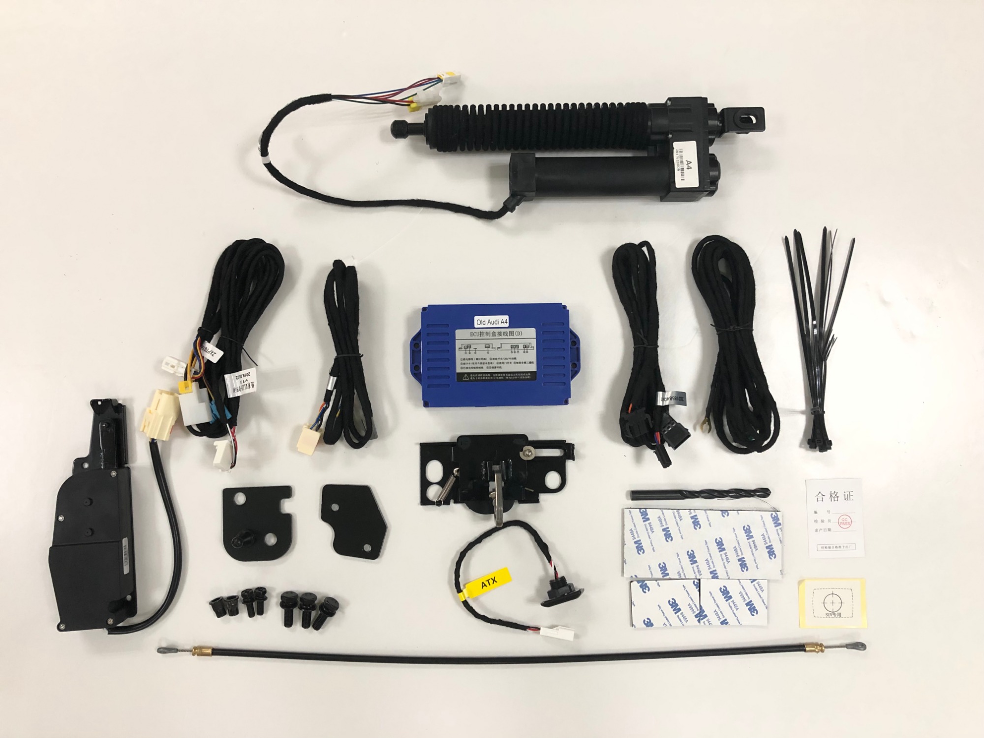 (BMW 5 Series G30 G38 / F10 F18 2010-2023 - Power tailgate lift kit) wire harness, brakcets, front switch button, gold control box, latch lock, screws, gasket, installation instruction e-edition, warranty card